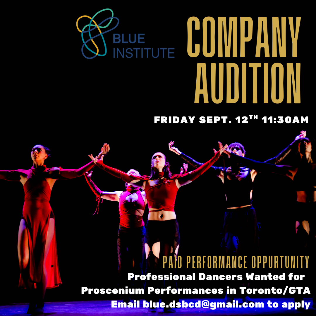 The Blue Institute Dance Company is currently seeking professional dancers for a series of upcoming proscenium theatre performances in Toronto and the Greater Toronto Area (GTA).